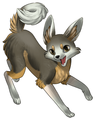 Sakari pants and drools a little, whining a hello at your approach. His tail wags a little but he doesn't get up when he sees you.