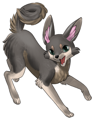 Husky {TOTB} pants and drools a little, whining a hello at your approach. His tail wags a little but he doesn't get up when he sees you.