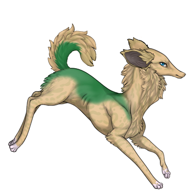 Fawnyspots has ocelot markings just like her brother, Naughtysplash. She also has the same green saddle. Her ocelot isn't invisible- but it is hard to spot. Fawnyspots is a friendly preat that loves playing chess, though it's a little difficult for her with her small paws.