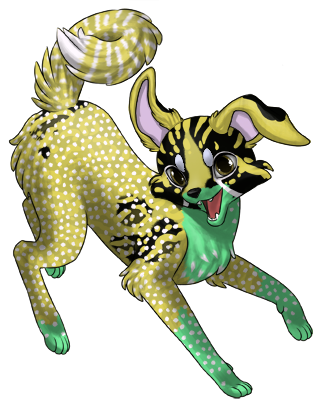 Zorvic pants and drools a little, whining a hello at your approach. Her tail wags a little but she doesn't get up when she sees you.