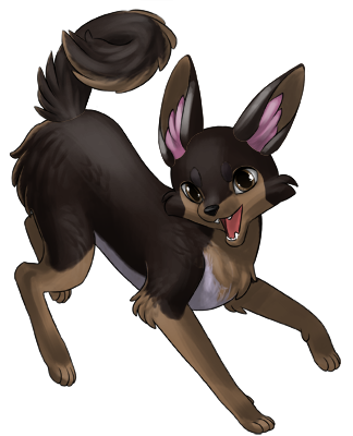 Zorvic pants and drools a little, whining a hello at your approach. Her tail wags a little but she doesn't get up when she sees you.