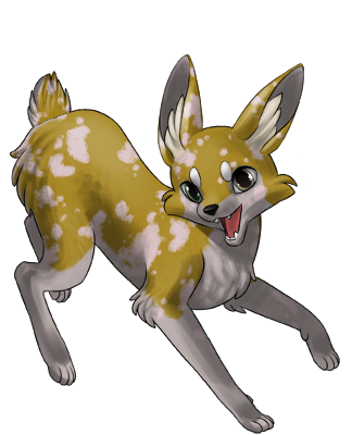 Zorvic pants and drools a little, whining a hello at your approach. His tail wags a little but he doesn't get up when he sees you.