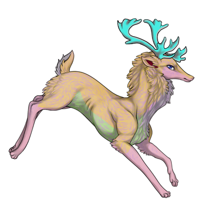You hear mollugo cerviana crying in excitement as you approach. He doesn't stop once you near, instead butting his head into the palm of your hand and his cries turn joyful as you start rubbing his head.