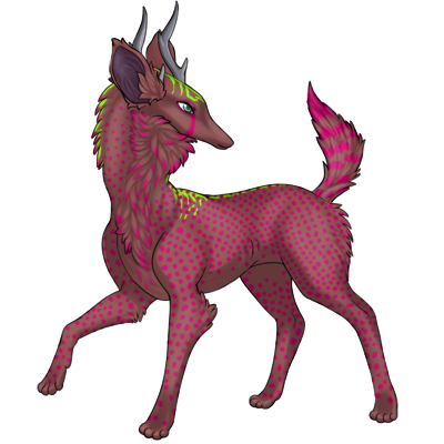 Lime dorsal male seems too full of energy. He paces back and forth, sometimes walking and sometimes running, even letting out a few impatient high pitched yips. As he sees you, he runs in a circle around you, huffing.