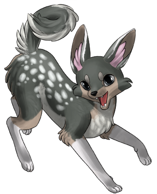 Spotted Terror pants and drools a little, whining a hello at your approach. Her tail wags a little but she doesn't get up when she sees you.