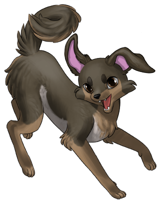 Fang pants and drools a little, whining a hello at your approach. His tail wags a little but he doesn't get up when he sees you.