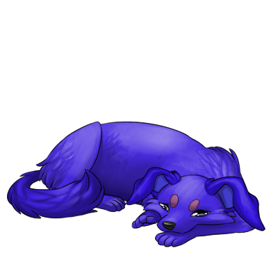 Ultramarine Blue #3312da runs up to you frantically, aggressively pushing his nose against your hand to try and get your attention. You get the strong impression he wants something.